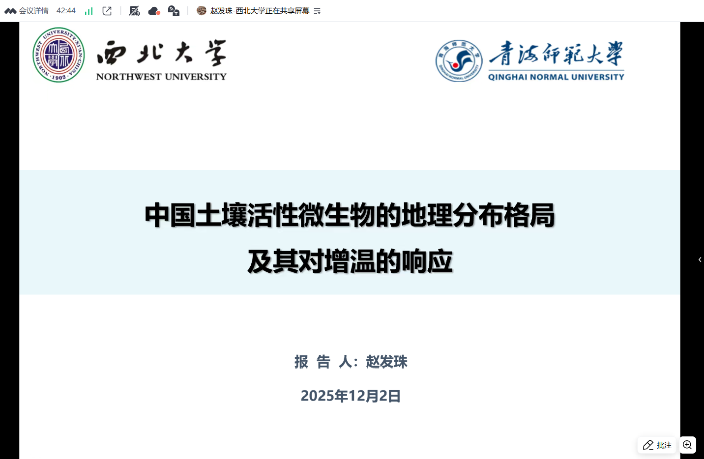 赵发珠教授应青海省青藏高原生物多样性形成机制与综合利用重点实验室邀请,在线上作了题为《中国土壤活性微生物的地理分布格局及其对增温的响应》的学术讲座。本次讲座由动漫色情影片
