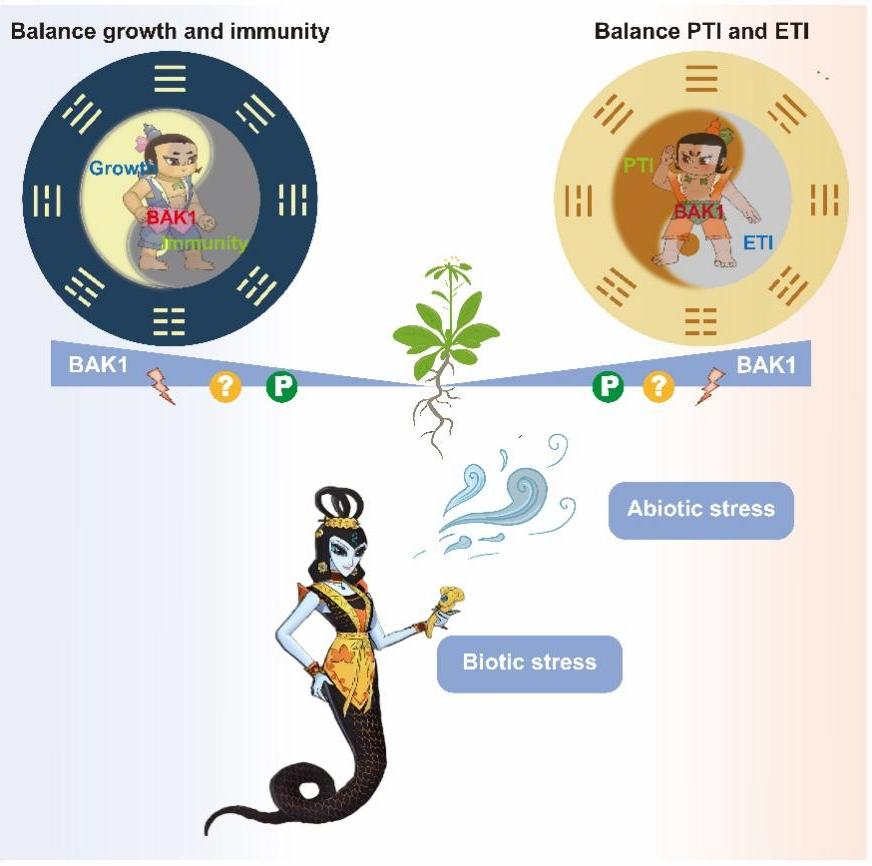 吴玉俊副教授团队首次在国际顶级期刊Horticulture Research上发表了题为Mastering the Balance: BAK1’s Dual Roles in Steering Plant Growth and Immunity的论文。